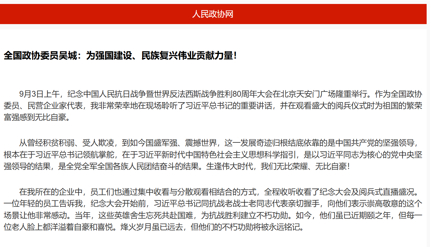 全國政協(xié)委員吳城:為強國建設(shè)、民族復(fù)興偉業(yè)貢獻力量!